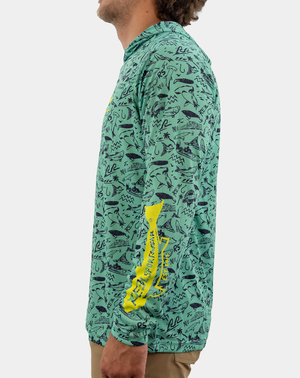 Step into your next adventure with the Gulf Wizard Hoody—a fusion of performance and style, built for those who live and breathe the saltwater life. This isn't just another hoody—it's your shield against the blazing sun and your partner in chasing reds, trout, and everything in between. Designed with a custom coastal pattern, the Gulf Wizard Hoody brings an edge to your gear that speaks to the Gulf Coast's untamed spirit.