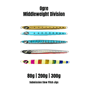 The Ogre Middleweight Division was built to blur the line between speed jig and slow pitch precision. Available in 80g, 200g, and 300g, it’s the go-to choice when you need to reach the mid-column or bottom fast—and stay there long enough to get slammed.