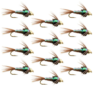 - Set of 12 - hand tied Tungsten Flashback Pheasants Tail Nymph Fly Fishing Flies - Hook Size 12