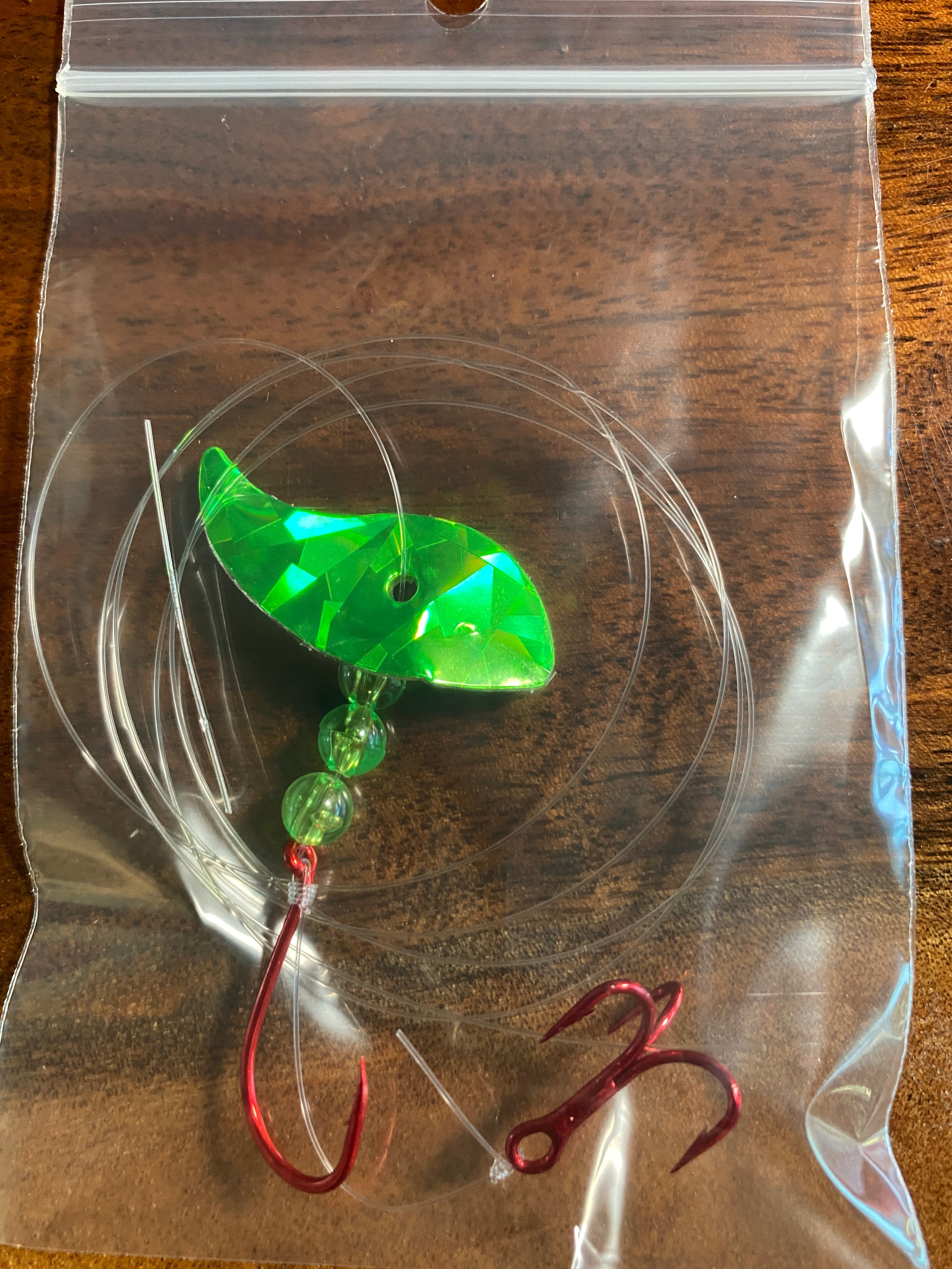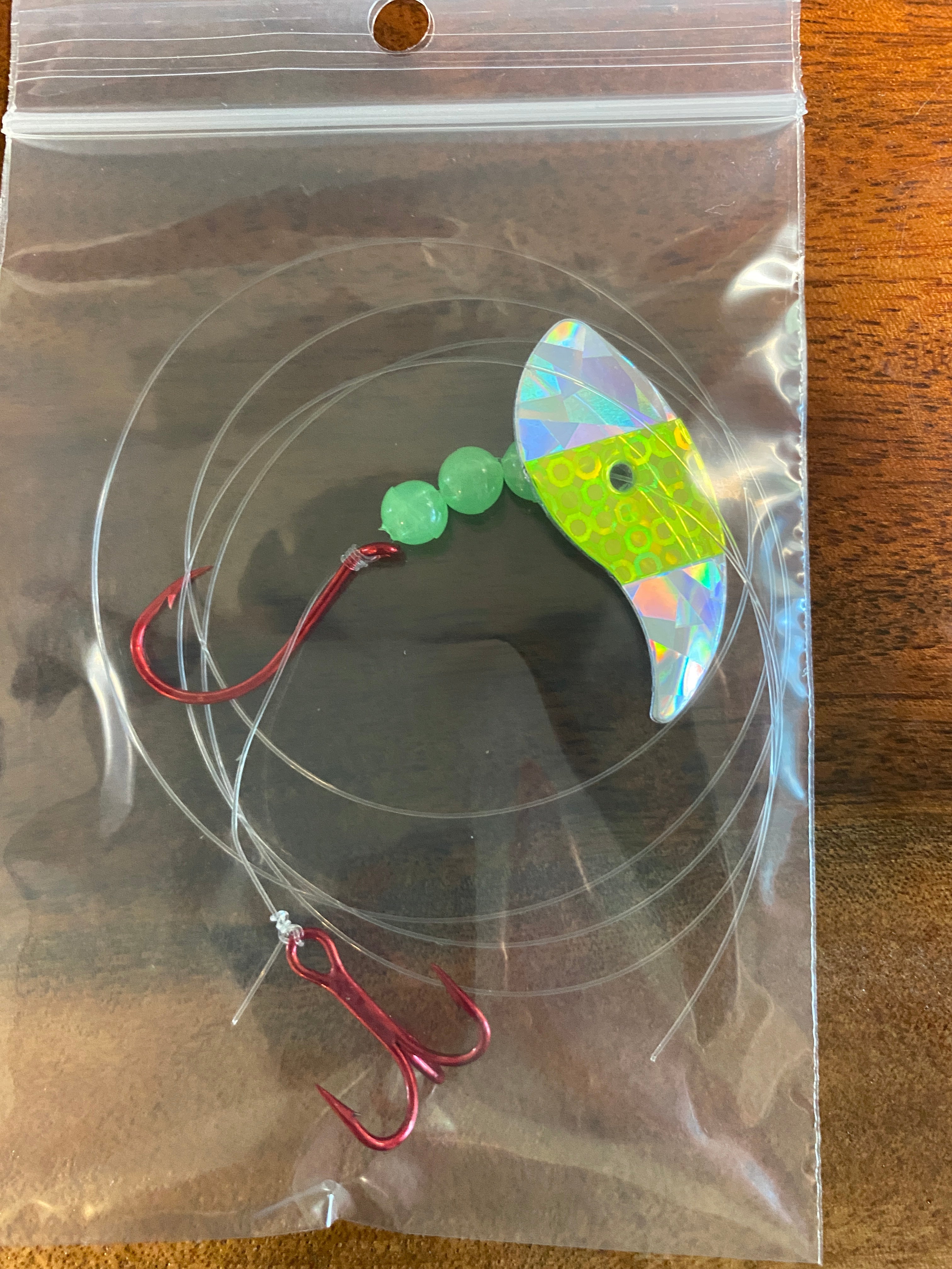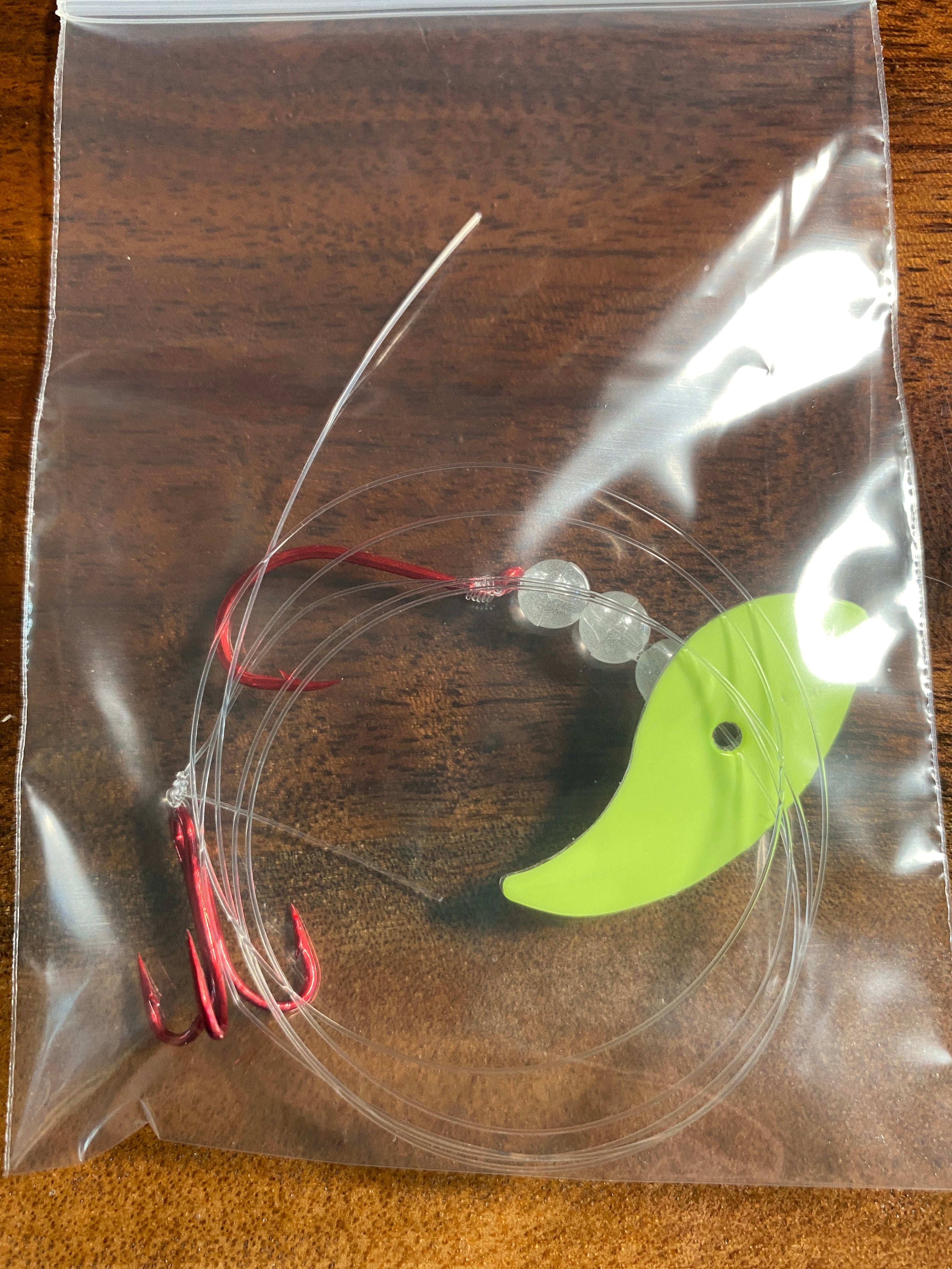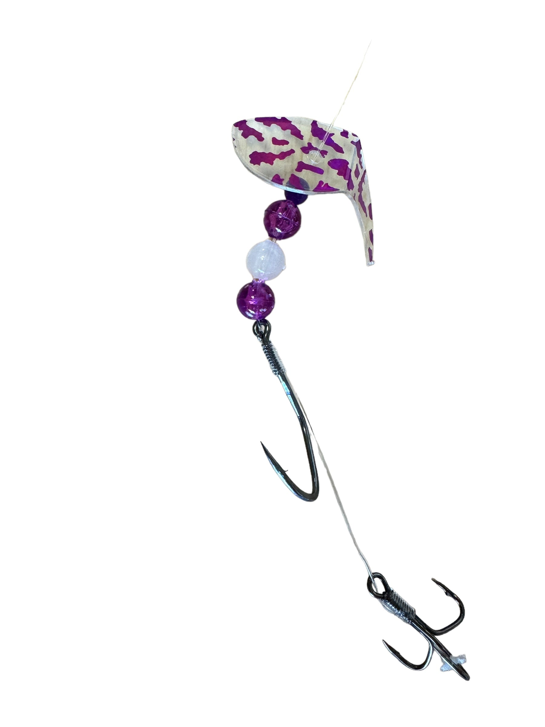 Vortex Sockeye Rig combines a Vortex Blade ™ , size 1/0 octopus hook, and #6 treble hook to create a deadly sockeye lure. The Vortex Blade ™ offers you a wide circular roll if you leave the blade flat. If you choose to bend the blade in the middle it exhibits an enticing wobble action. Have fun choosing which way to bend the blade, forward, backward, and at any angle for different presentations.