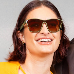 Turn over a stylish new leaf, like a Reformed Mad Scientist, with green VRGs featuring orange-gold ocean gradient lenses! No slip or bounce when you get a little carried away with the occasional spark of genius. (Hey, some habits are hard to shake.)