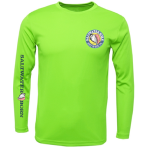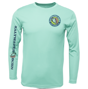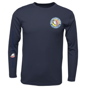 A great shirt for the water! UPF 50+ sun protection and made of 100% polyester Extreme-Tek material that is breathable, anti-bacterial, and moisture-wicking. The shirt is sublimated so there are no hot spots or peeling.