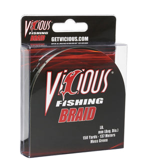 The definitive choice for strength and durability, Vicious Braid excels where monofilament and fluorocarbon lines fear to tread. Woven with the highest quality PE fibers, the line has virtually no stretch allowing for bite detection at any depth and lightning-fast hooksets.