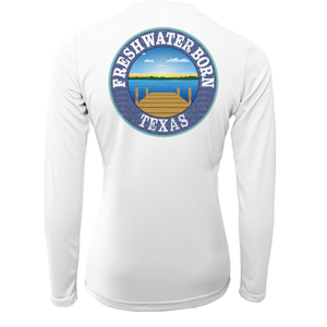 Camiseta de manga larga para mujer Freshwater Born de Texas, EE. UU., con protección solar UPF 50+ y tecnología Dry-Fit.