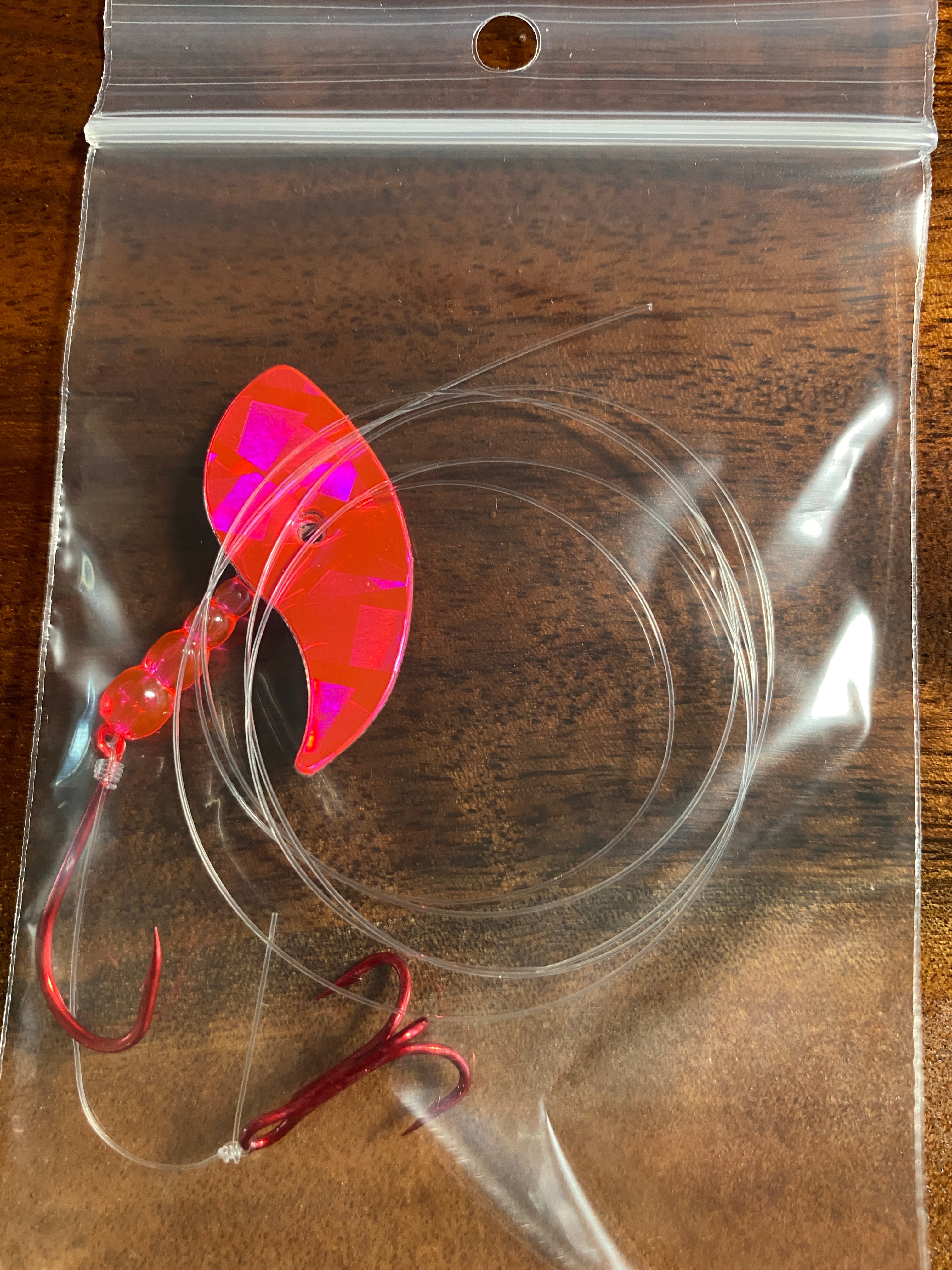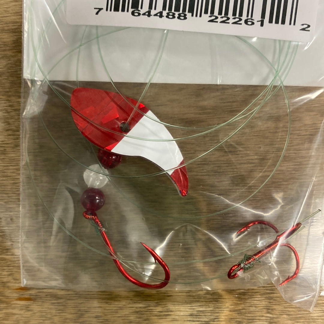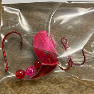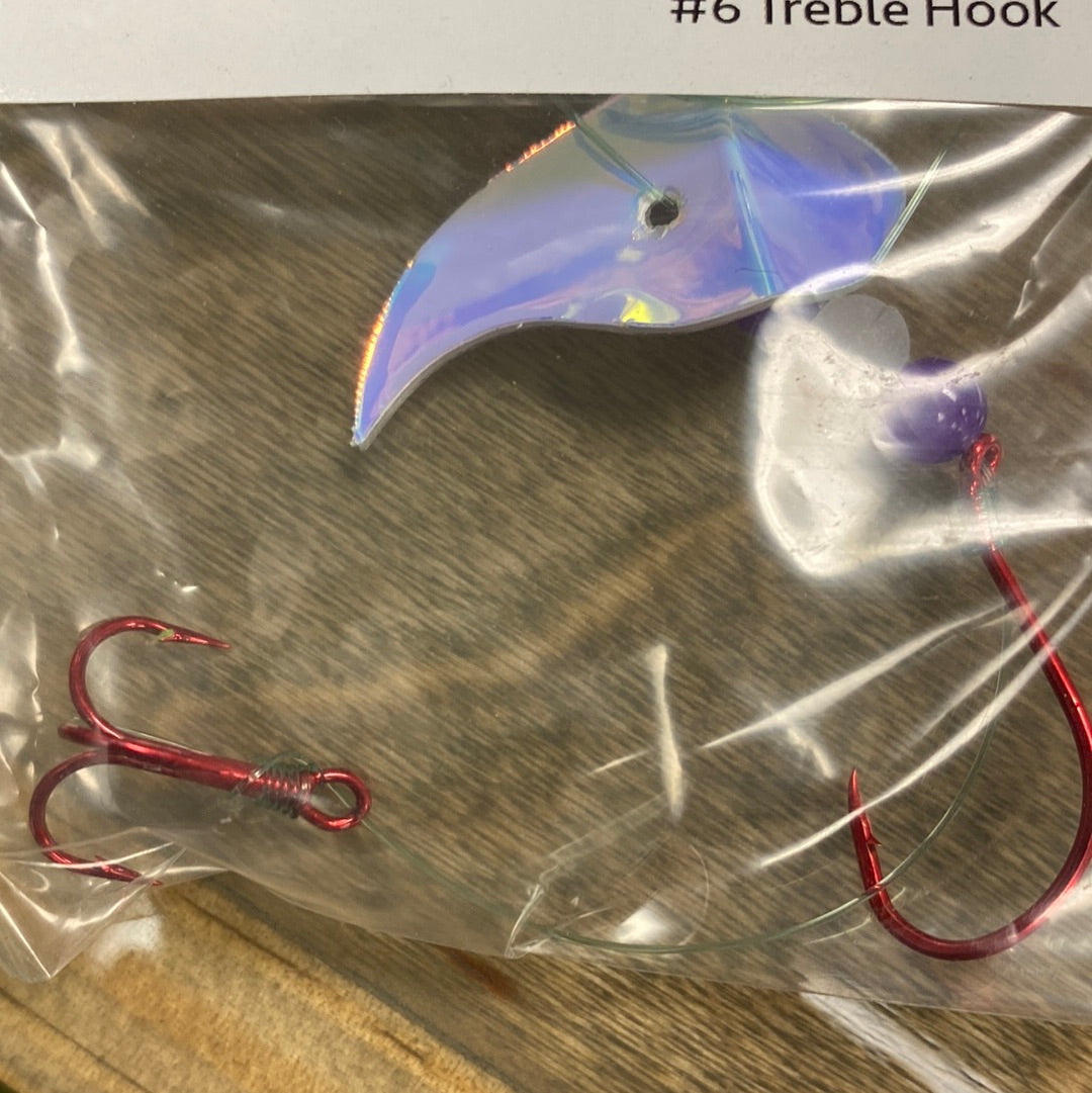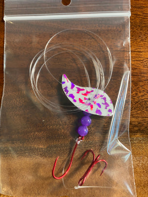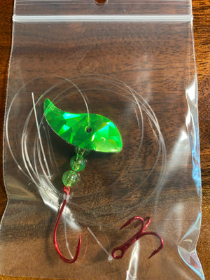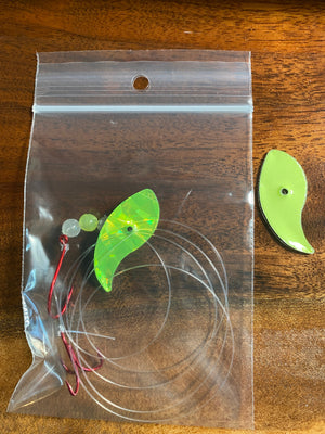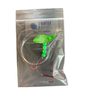 El aparejo Vortex Sockeye combina una cuchilla Vortex Blade™, un anzuelo de pulpo del tamaño 1/0 y un anzuelo triple #6 para crear un señuelo mortal para el salmón rojo. La cuchilla Vortex Blade™ ofrece un amplio giro circular si se deja plana. Si se opta por doblar la cuchilla por la mitad, presenta una atractiva acción de vaivén. Diviértase eligiendo cómo doblar la cuchilla: hacia adelante, hacia atrás y en cualquier ángulo para diferentes presentaciones.