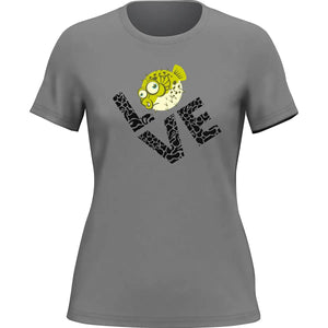 Camiseta "Love Fishing Green Blowfish Globe" para mujer