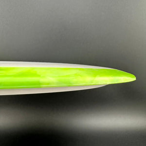 ¡Llega una nueva incorporación a la familia de plástico Fission: el Fission Defy! Debutando como un driver de distancia estable-sobreestable, el Defy sigue siendo un driver en el que puedes confiar para mantenerte a raya. Con números de vuelo de 11 | 5 | -1.5 | 3, el Defy en plástico Fission es ligeramente menos estable, lo que lo convierte en una excelente opción para distancias fáciles pero fiables para todas las velocidades de brazo. El Fission Defy seguirá siendo el driver de bloqueo de línea y remate frontal que se espera que sea, pero ahora, gracias a su disponibilidad en pesos más ligeros, ¡más jugadores podrán disfrutarlo! ¡Descubre las ventajas de la tecnología Fission y prueba el Fission Defy hoy mismo!