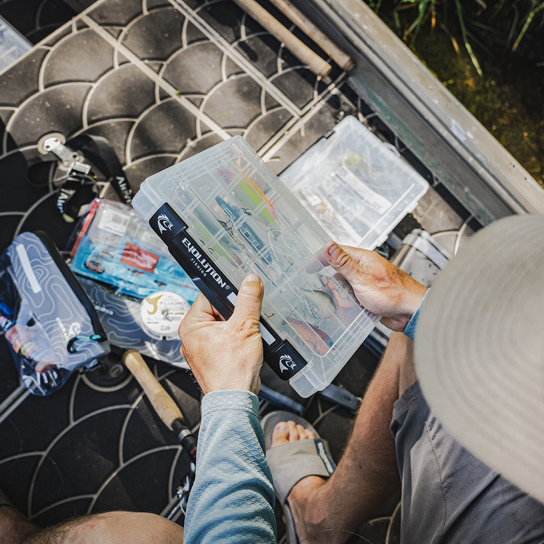 Mejora tu experiencia de pesca la bandeja para aparejos Evolution Fishing 60/40 3600 y disfruta de la comodidad de una caja de aparejos bien organizada cada vez que salgas al agua.
