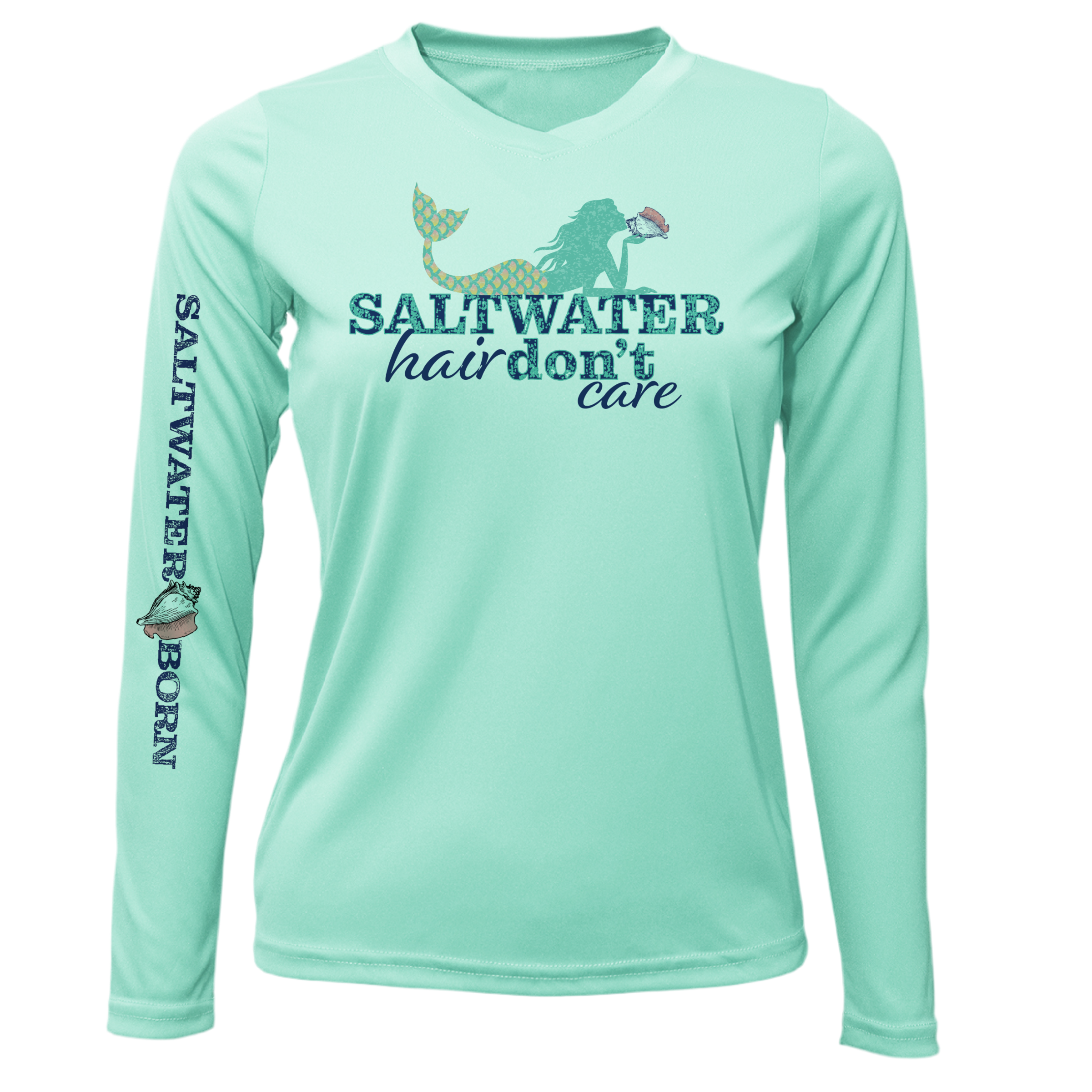 Key West, FL "Saltwater Hair...Don't Care" Women's Long Sleeve UPF 50+ Dry-Fit Shirt