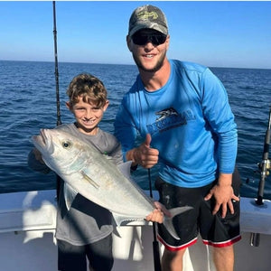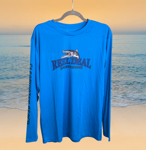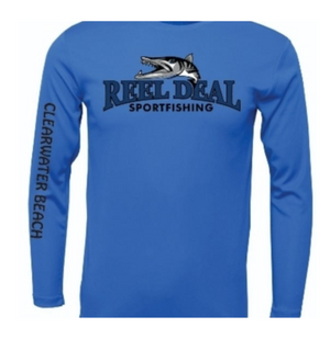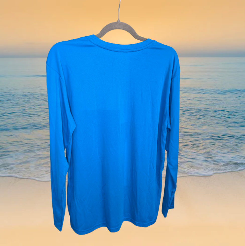 ¡Mantente fresco, cómodo y protegido al aire libre con esta camiseta técnica de manga larga azul real o blanca con el logo de barracuda de Reel Deal! Mantén tu piel a salvo de los dañinos rayos del sol con la protección SPF-50 y el tejido ligero, ¡perfecto para cualquier aventura! Añade diversión a tu vestuario en tallas desde la pequeña hasta la 3x y muestra al mundo que tienes el Reel Deal.
