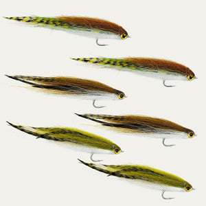 Aquí están las moscas de primera calidad atadas a mano que se incluyen. Disponibles en paquetes de 6 y 12 unidades para que esté preparado con una variedad de opciones.
