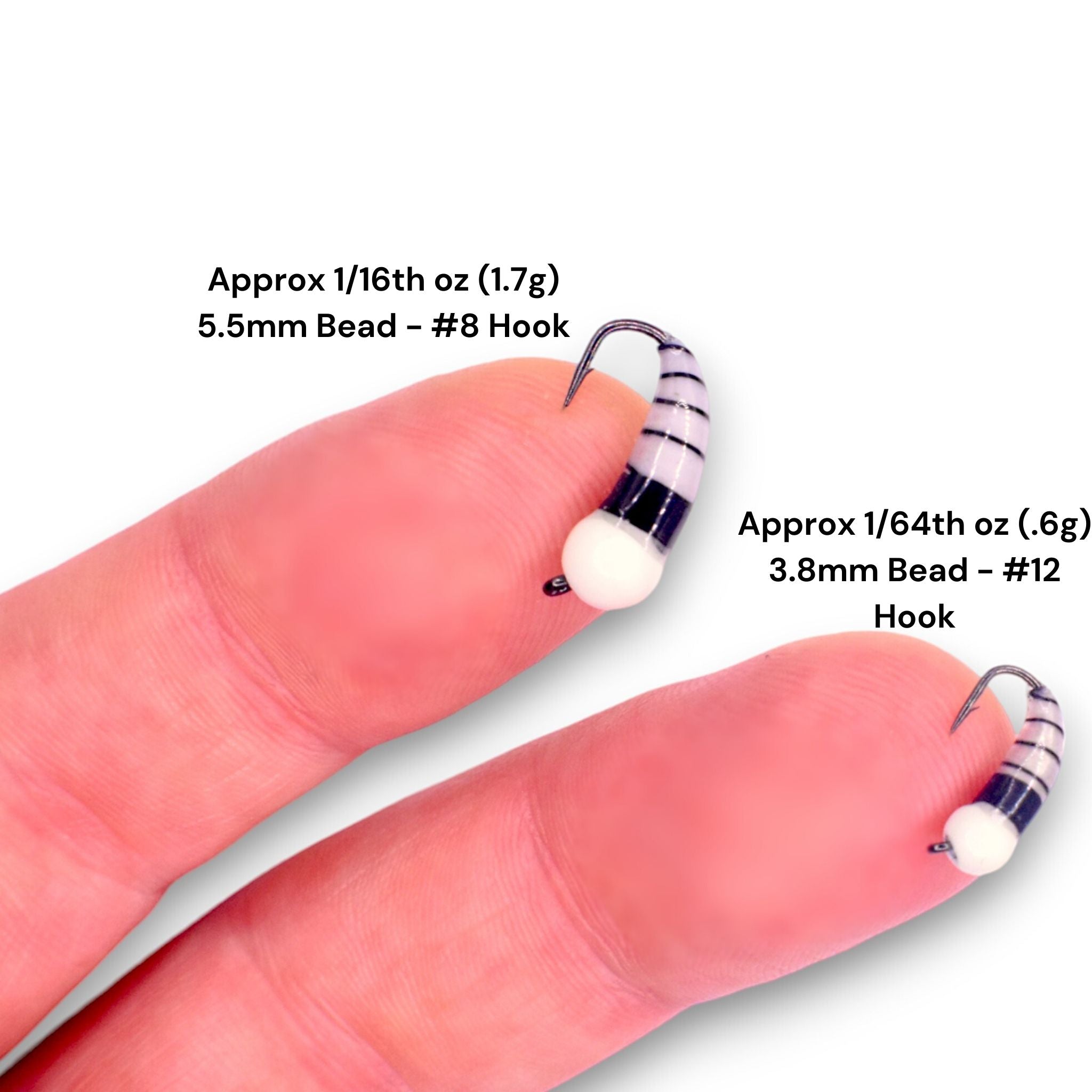 • Approx 1/64th oz (.6g) 3.8mm Bead - #12 Hook