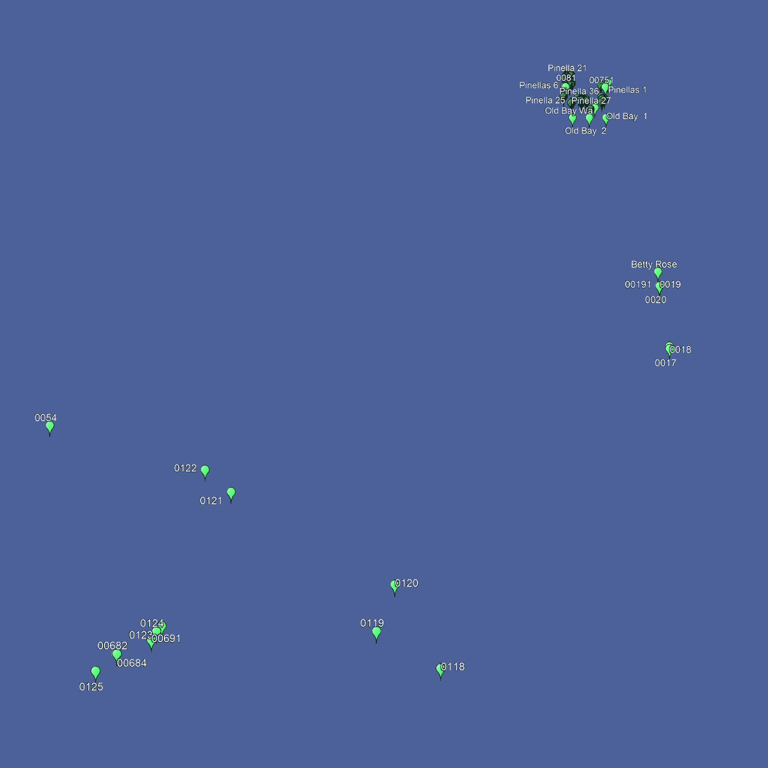 Lieux de pêche à Pinellas - Nombre de pêcheurs près des côtes