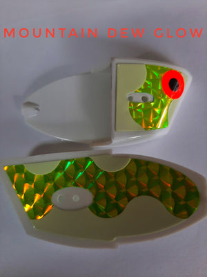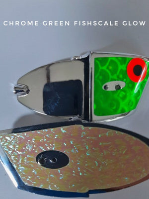 Couleur: NOUVEAU Juillet 2025 - Tête phosphorescente à pois verts/noirs UV écailles de poisson - Double face