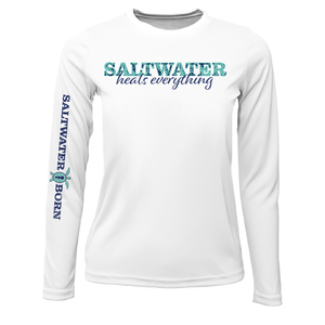 Key West, Floride - T-shirt à manches longues pour fille « L'eau salée guérit tout » - Protection solaire UPF 50+ - Tissu respirant