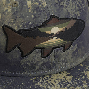 La casquette de pêche Sunset Trout à dos en maille arbore un écusson représentant une truite et une montagne sur le devant. Cette casquette de pêche à la mouche est composée de 6 panneaux, avec un devant structuré et un dos en maille. Sa coupe américaine convient aux tailles M à 2XL. Grâce à sa fermeture élastique ComfortSnap, elle allie l'élasticité d'un élastique à la précision d'une fermeture à pression. Si vous recherchez la casquette idéale pour vos activités de plein air, la montagne ou la pêche, vous êtes au bon endroit. Cette casquette à motif de poisson est disponible en gris et en olive.