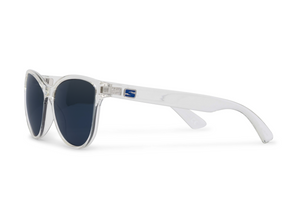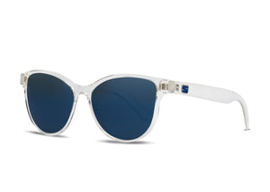 Amplify your vision wearing the Mia Crystal Gloss sunglasses - engineered for adventurers devoted to living boldly. The transparent crystal frame and electric blue lenses intensify color as you take on new challenges.