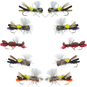 Collection Basics - Assortiment de mouches sèches Parachute Chernobyl Ant Foam - 10 mouches sèches Grasshopper Dropper - 5 modèles - Hameçon 10