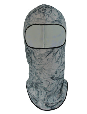 Our Fin-Flank Sun Masks provide extreme sun protection.  Wear for anatomically correct full head coverage or around your neck as a gaiter.  We present "Fishwater" a light-colored favorite on this UPF50 cooling wicking poly-Spandex Sun Mask.