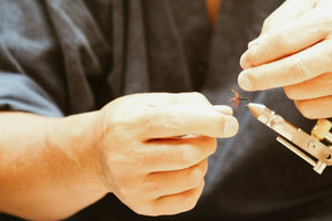 These are the tenkara flies used by renowned tenkara angler, and leading authority on tenkara in Japan, Dr. Hisao Ishigaki. For the last 10 years, Dr. Ishigaki has used this one tenkara fly pattern exclusively, and has continued catching as many fish as he ever did. The Ishigaki Kebari (Ishigaki fly) fully embodies the simple spirit of tenkara fly fishing, where more emphasis is placed on the technique of the angler, not on the gear he uses.