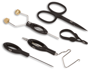 Emballé dans un étui de voyage robuste et comprenant les ciseaux tout usage Ergo, la bobine tout usage Ergo, le bocal Ergo, le finisseur de fouet Ergo et la pince à hackle Ergo, c'est un excellent choix comme cadeau pour le premier monteur ou le monteur de longue date qui veut embellir son banc avec quelque chose de nouveau.