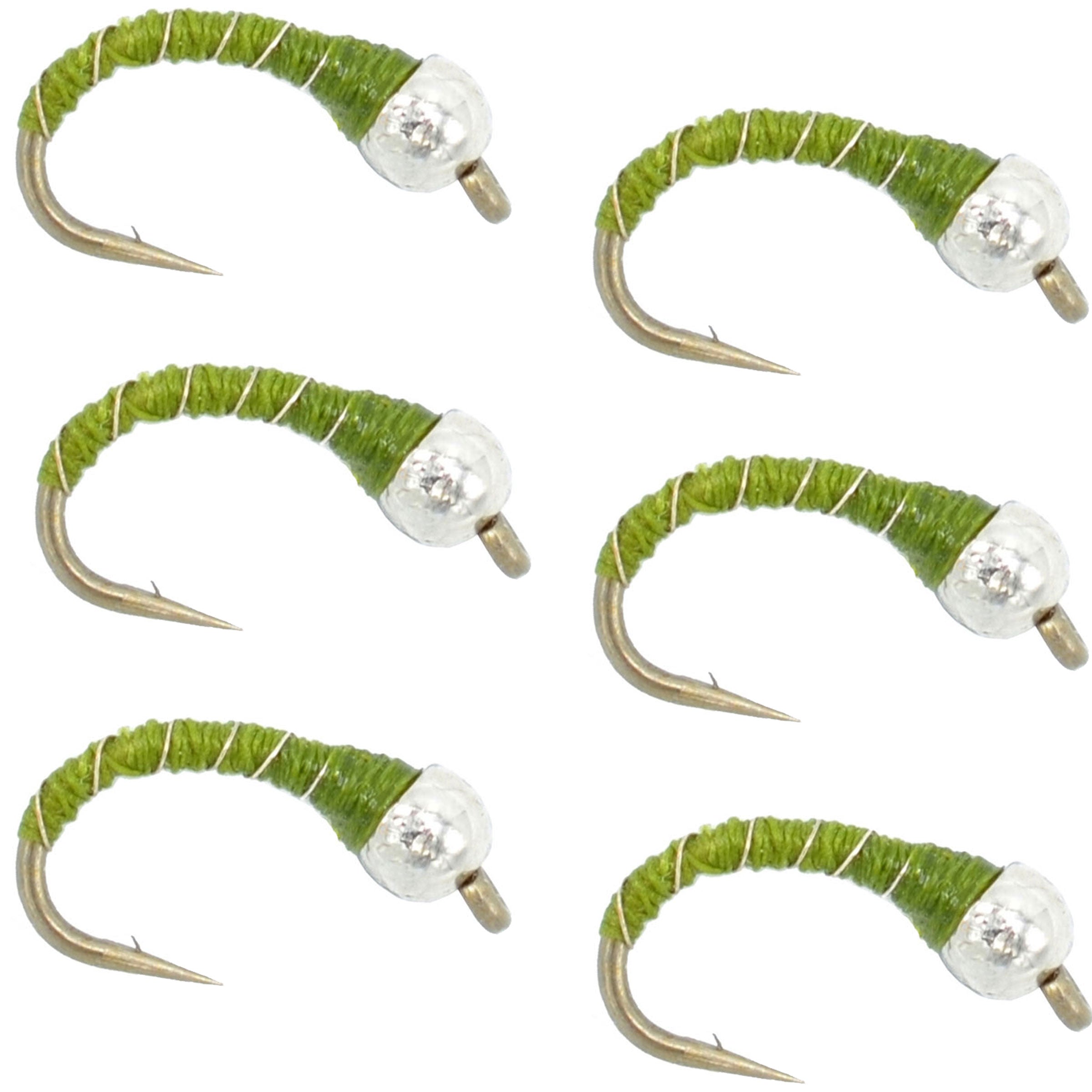 Bead Head Olive Zebra Midge Still Water Nymph Fly - 6 Flies Hook Size 16
