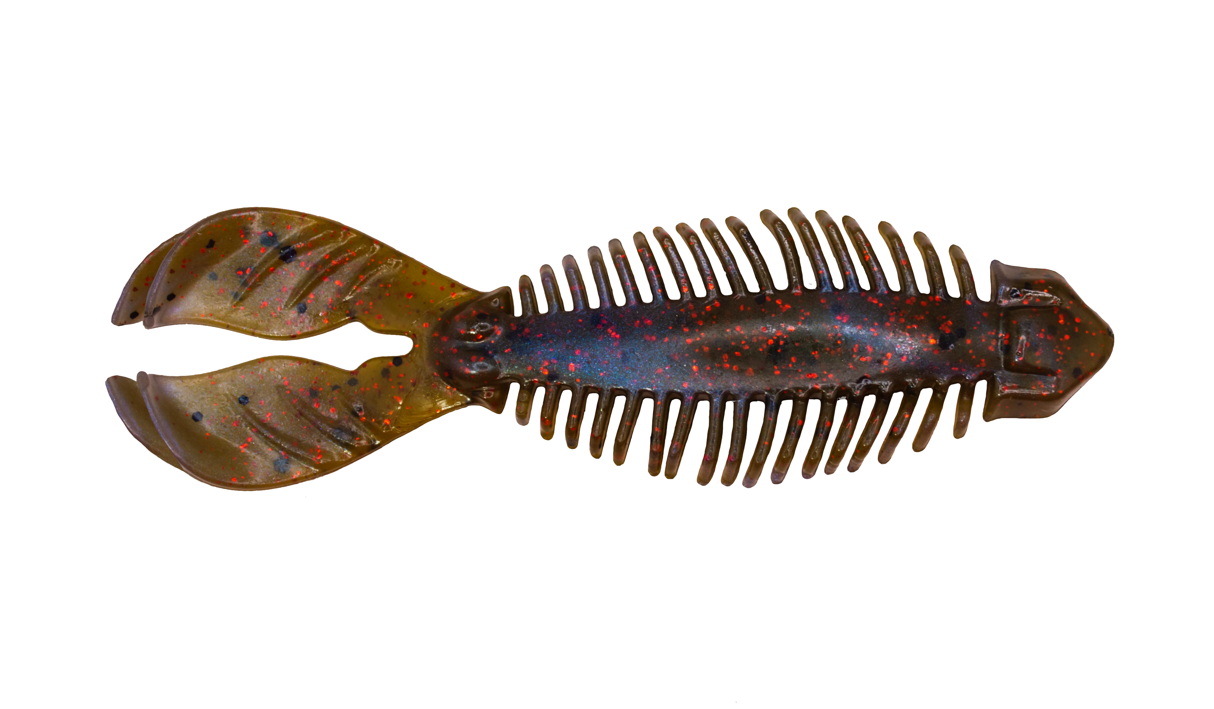 The Craw Gill's hybrid design is a perfect combination of profile and action. Not only does it mimic a crayfish, but it’s wider profile perfectly imitates a small bluegill. The Craw Gill's appendages produce a dynamic swimming action while its deeply ribbed body creates vibration and maximum water displacement. Designed with a custom hook keeper on the head for durability the Craw Gill is perfect for pitching and flipping into cover as well as being an amazing jig trailer.