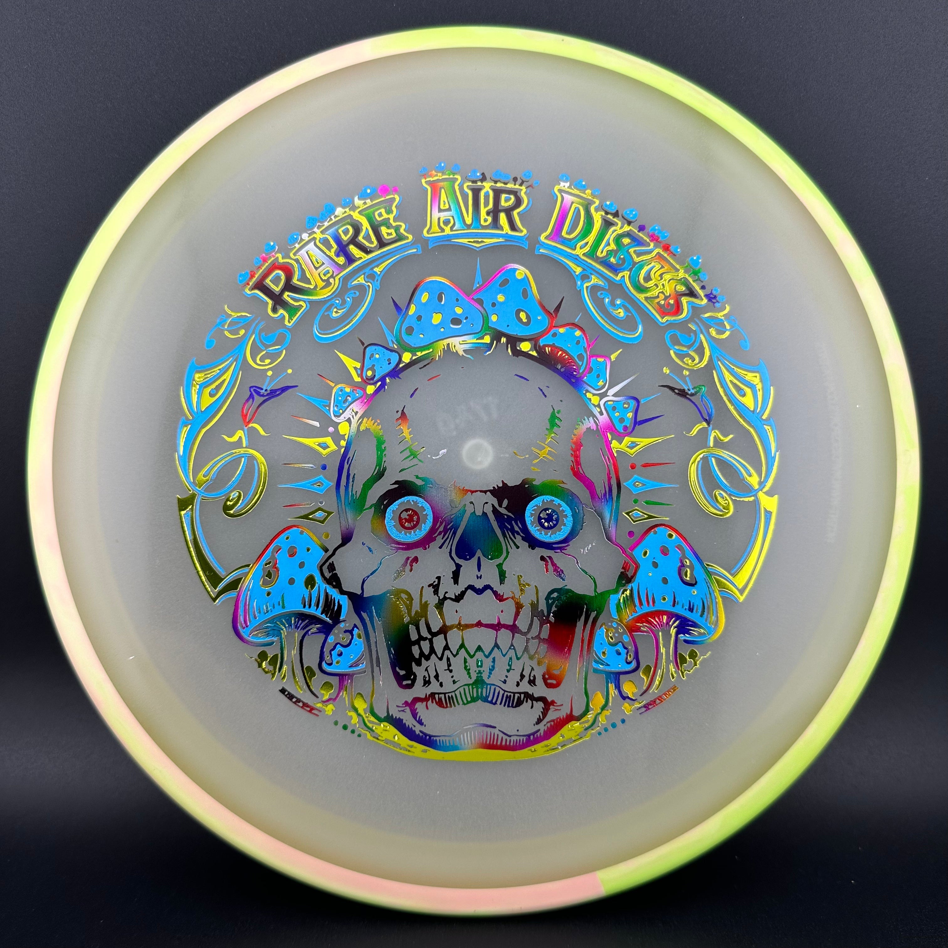 6.5/5/-1/1 *Crushin' Amanitas stamp designed by Manny Trujillo aka Soul Crusher! *This is the VIP version of the stamp, with more of an abstract foil colorway! *All discs have Metallic Chartreuse, Blue Holo and Jellybean Foils (Jellybean foil being different for every disc, making each disc a 1 of 1).