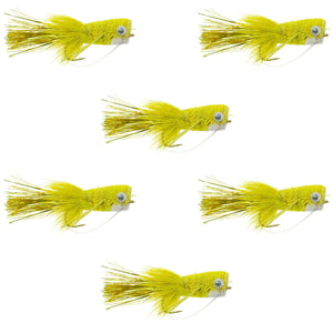 Flashtail Bass Popper 6 Flies Size 8 - Yellow Bass Fly Fishing Bug Wide Gape Bass Hooks With Weed Guard