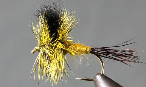 Tied with black calf hair wings and a generous hackle mane, the Green Drake Wulff combines the silhouette of a Green Drake on the water but rides higher than other patterns.