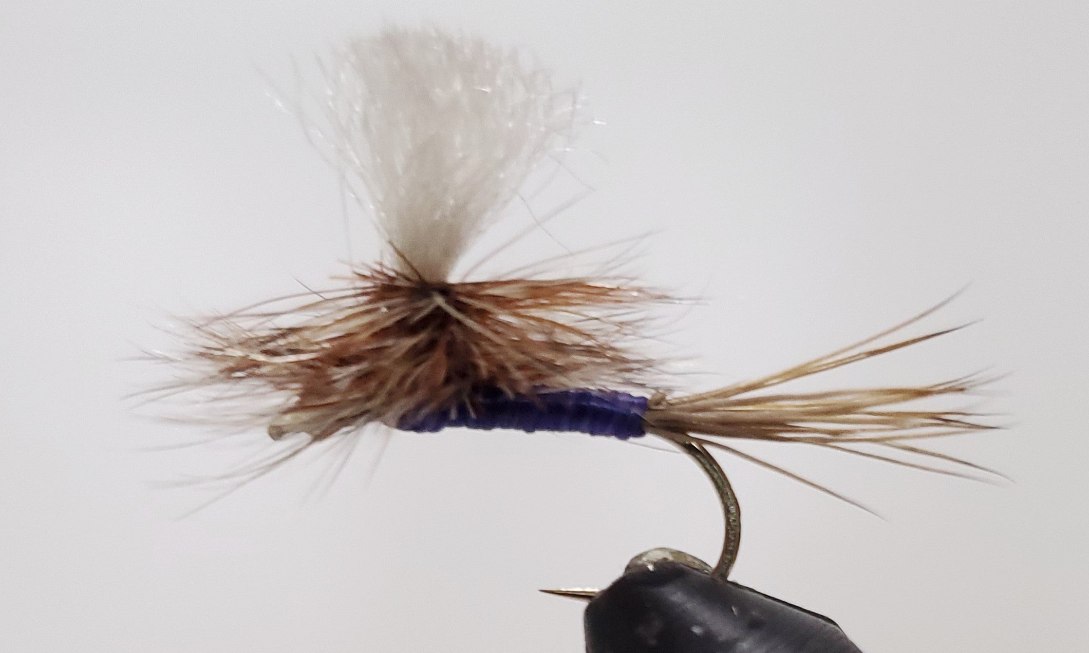 Typically tied with a white poly post and a purple body. The white poly post makes the fly easily visible to the angler, and the purple body is an attractor color that is known to be effective for catching fish.