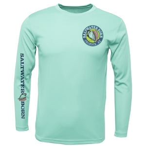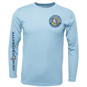 A great shirt for the water! UPF 50+ sun protection and made of 100% polyester Extreme-Tek material that is breathable, anti-bacterial, and moisture-wicking. The shirt is sublimated so there are no hot spots or peeling.