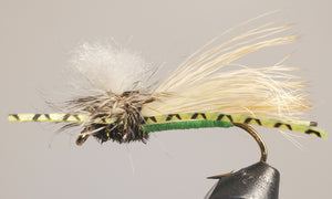 The Silly Leg Hopper is a version of the PMX / X-Hopper with barred rubber legs. These rubber legs have stripes that imitate the natural striation on a grasshopper-s legs but the rubber gives them action inducing more strikes!