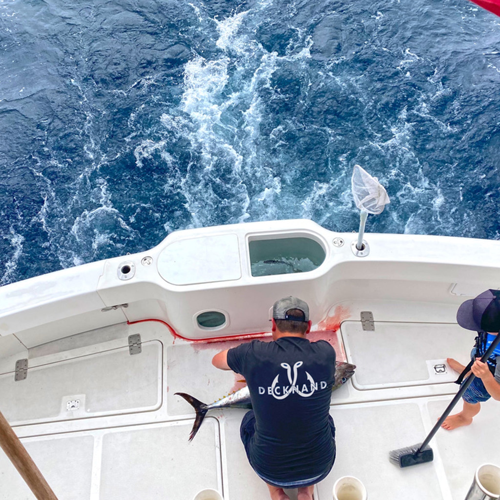 Our Premium Performance Tri-Blend fishing tee stamped with the Deckhand Icon logo.
